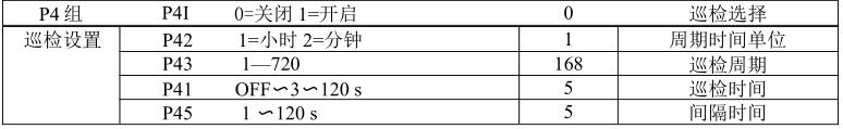 該參數(shù)定義;巡檢周期的單位計算時間。(岀廠默認為“1”) 可設置范圍:1 =按小時計算 2 =按分鐘計算